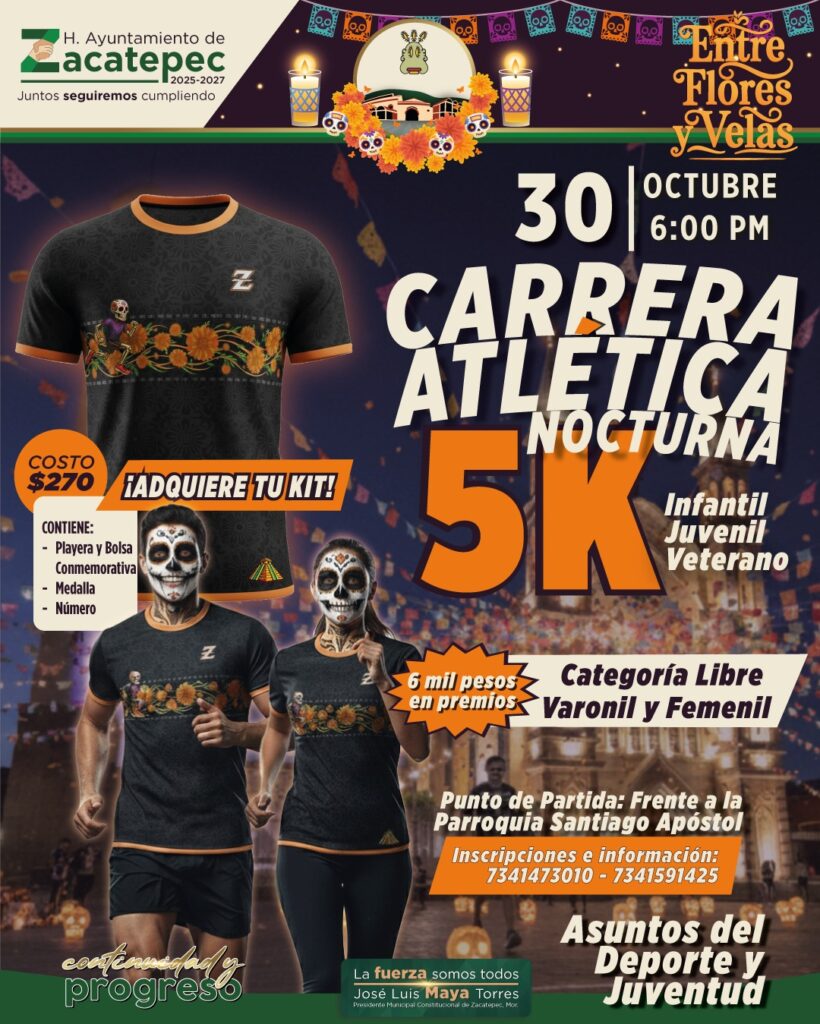 Con el lema “La tradición y el deporte se unen en Zacatepec”, esta carrera promete ser un punto de encuentro donde la fuerza atlética se mezcla con el simbolismo de las flores de cempasúchil y las velas, enmarcando una experiencia inolvidable para participantes y espectadores.